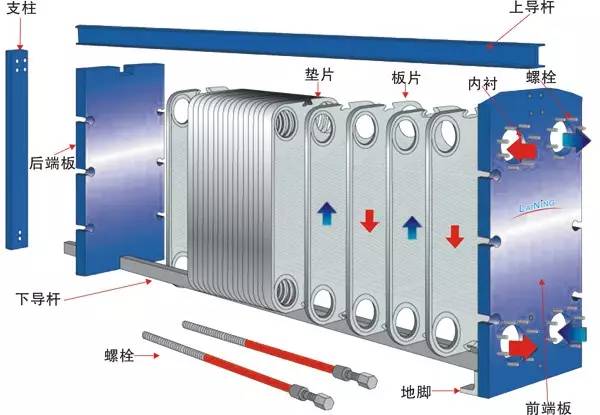 板式換熱器的墊片在使用時(shí)如果發(fā)生滲漏、斷裂、老化等現(xiàn)象,要及時(shí)更換。更換應(yīng)按以下順序進(jìn)行。