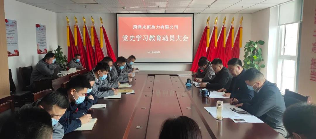 為進(jìn)一步提高黨員干部學(xué)黨史、強(qiáng)信念的主動(dòng)性和積極性,推動(dòng)黨史學(xué)習(xí)教育真正學(xué)有所悟、學(xué)有所成,4月8日,菏澤永恒熱力召開黨史學(xué)習(xí)教育動(dòng)員大會(huì),對黨史學(xué)習(xí)教育進(jìn)行專題安排部署。會(huì)議由公司黨支部書記、董事長肖培飛主持,中層副職以上干部、全體黨員、入黨積極分子共計(jì)44人參加了會(huì)議。