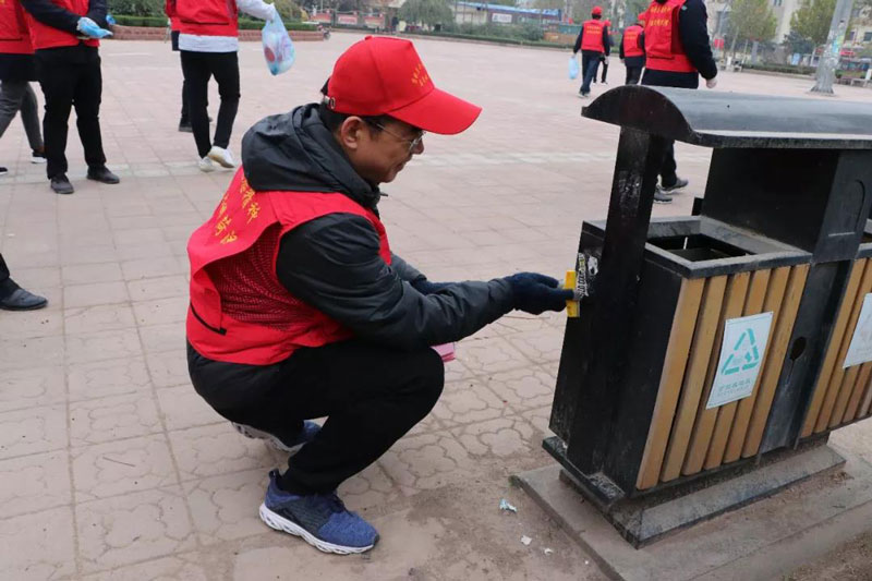 清晨7時許,天空還下著蒙蒙細雨,菏澤永恒熱力志愿者早已集結(jié)完畢,身著整齊的志愿者服裝,手拿垃圾袋、小鏟子、宣傳冊,在副董事長田濤同志的帶領(lǐng)下,大家從公司出發(fā),一路經(jīng)人民路中華路行至火車站再折返。