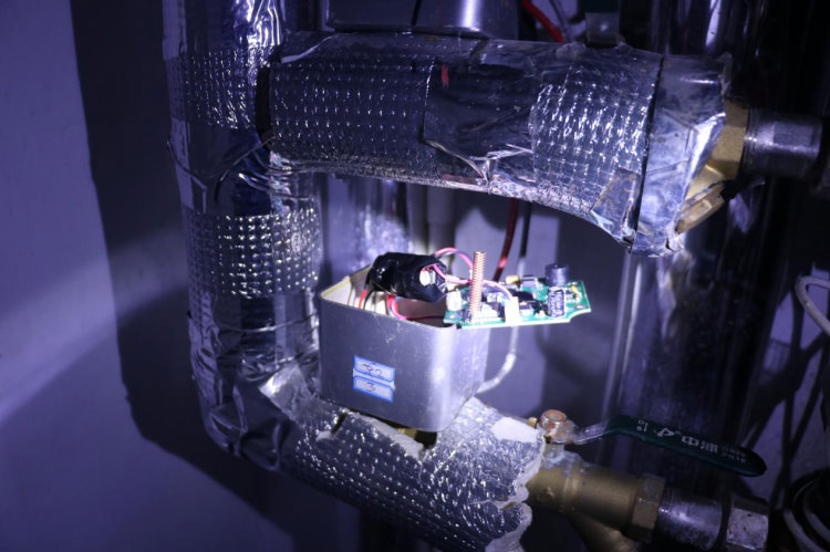 3日下午5時許,菏澤永恒熱力工作人員和牡丹派出所民警共同來到御河丹城小區(qū)31號樓某單元的管道井發(fā)現(xiàn),預(yù)付費(fèi)智控閥已經(jīng)被破壞,電機(jī)已被拆除,暖氣閥門也被私自打開,機(jī)械式熱能表顯示進(jìn)回水溫差5.3度,流量925.5立方米,流速每小時0.171立方米。