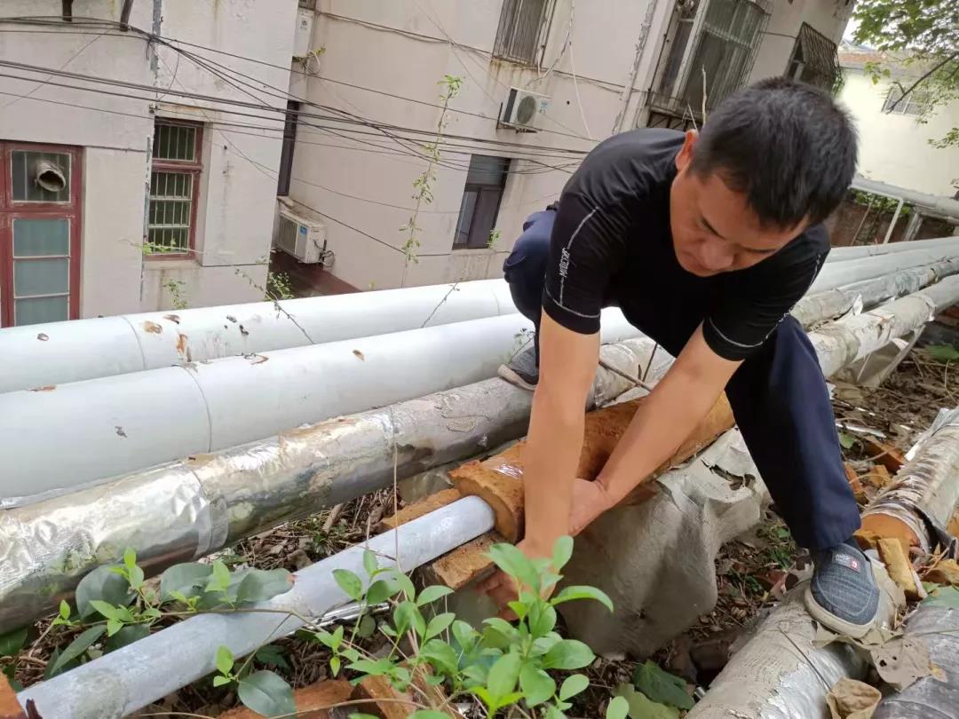 運(yùn)營管理六部轄區(qū)內(nèi)老舊小區(qū)較多,小區(qū)整體設(shè)施已開始出現(xiàn)老化現(xiàn)象,加上管道及外保溫材料常年經(jīng)受風(fēng)吹日曬,極易破損。在外保溫材料中,保溫棉起到很重要的作用,如果發(fā)生脫落或缺失會(huì)造成供暖管線的熱量損耗,對供暖質(zhì)量影響較大。為此,小區(qū)管理員加大對老舊小區(qū)的巡查力度,巡查過程中發(fā)現(xiàn)有部分二網(wǎng)管道保溫材料缺失、脫落,管理員發(fā)現(xiàn)后立即對缺失部分進(jìn)行修補(bǔ)。