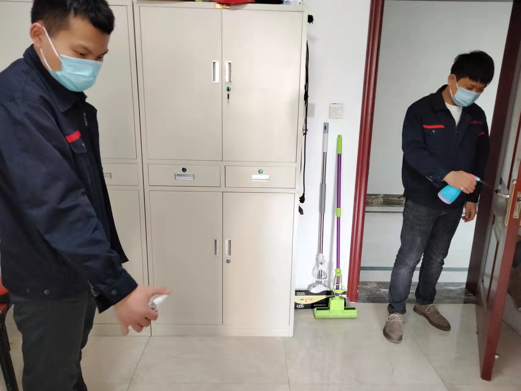 針對駐地辦公區(qū)域,運營管理一部每天進行無死角消殺,尤其是辦公桌面、常用物品、門把手、鑰匙、水桶等公共用品,必須用酒精進行噴灑和擦拭。文員如實記錄工作人員體溫測量表、消殺情況表和來訪人員體溫測量表,并接受其不定期抽查。