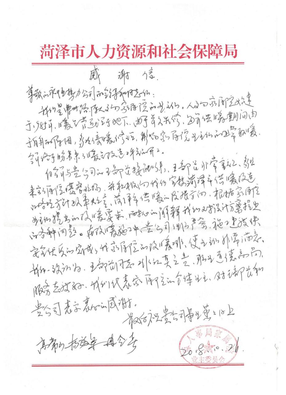 10月26日,永恒熱力辦公室收到了一封來自曹州路人事局家屬院業(yè)主委員會的感謝信。信中對永恒熱力特別是運行管理二部的供暖服務工作給予了高度評價和贊揚。