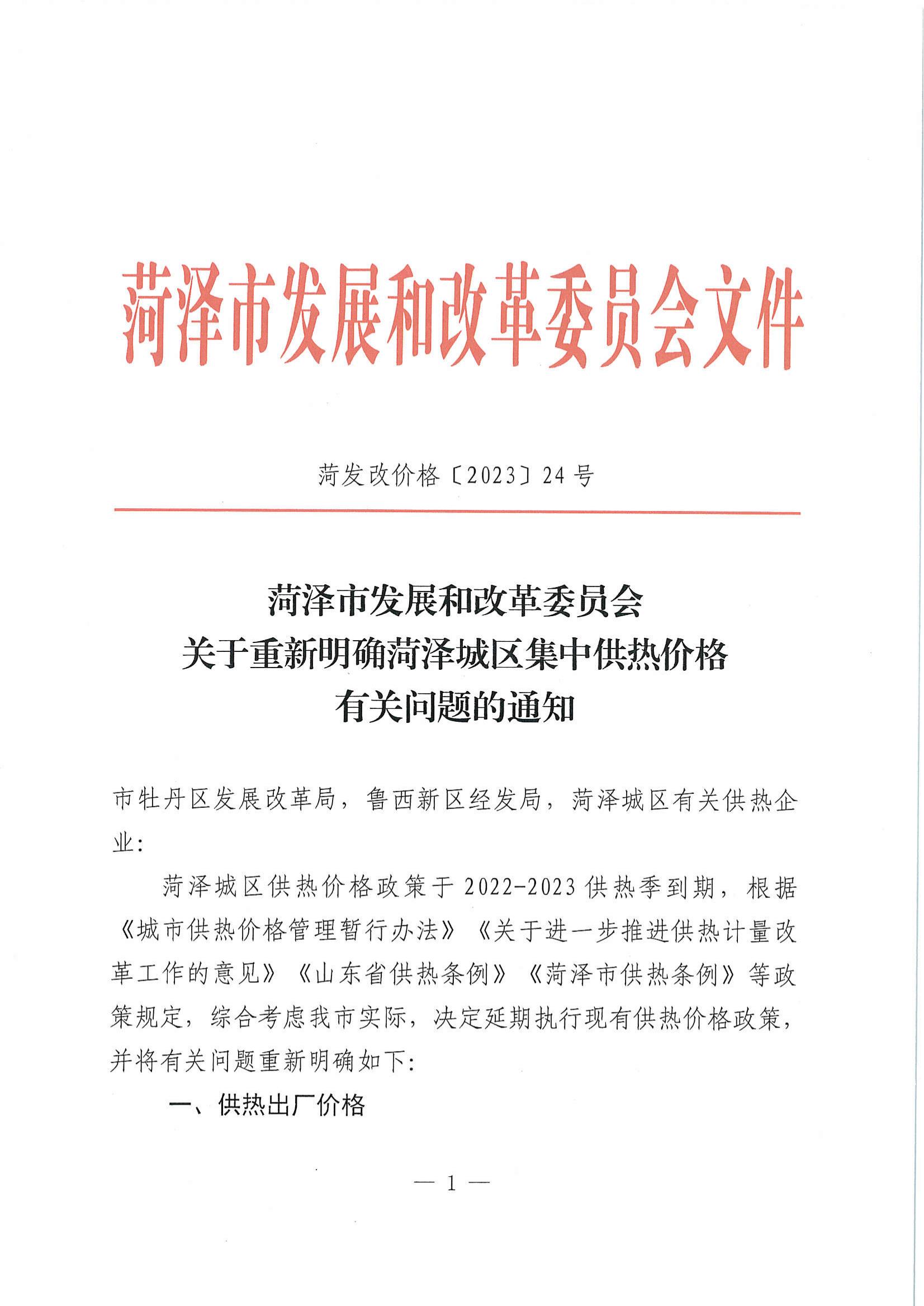 菏澤永恒熱力有限公司收費(fèi)依據(jù):